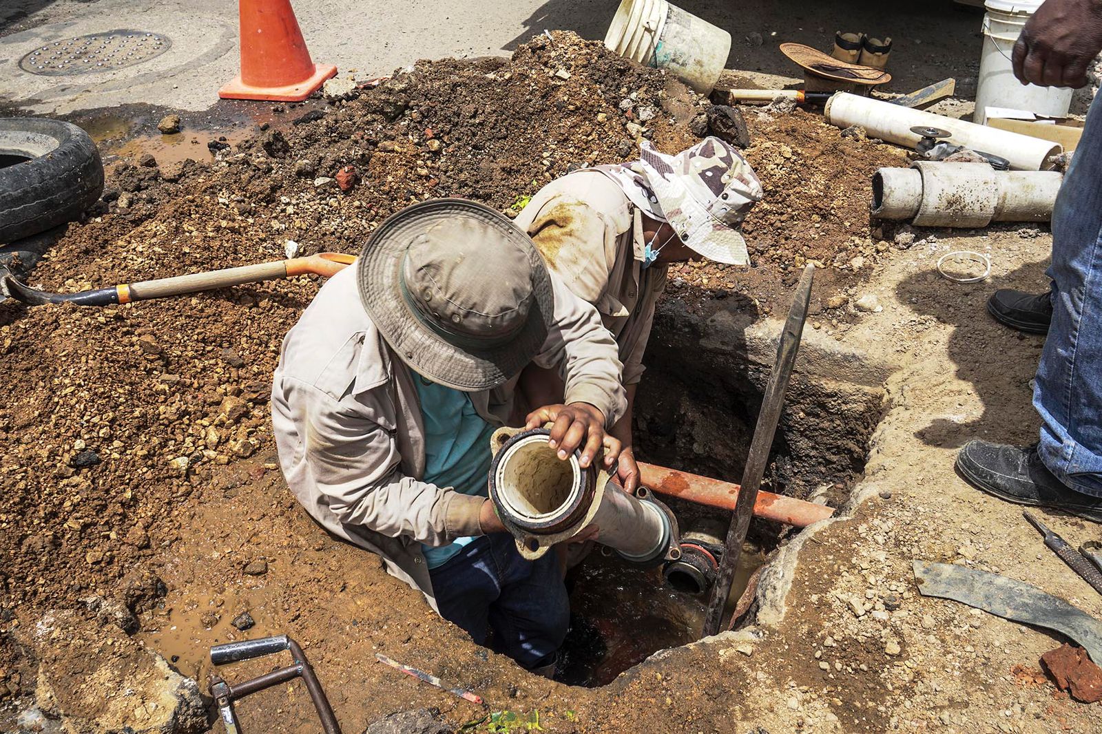Detalló que en el lugar de las maniobras, ha sido necesario ejecutar la instalación de tubería de PVC, esto con la finalidad de atender de manera inmediata los reportes ciudadanos referentes a la fuga de agua generada este día.