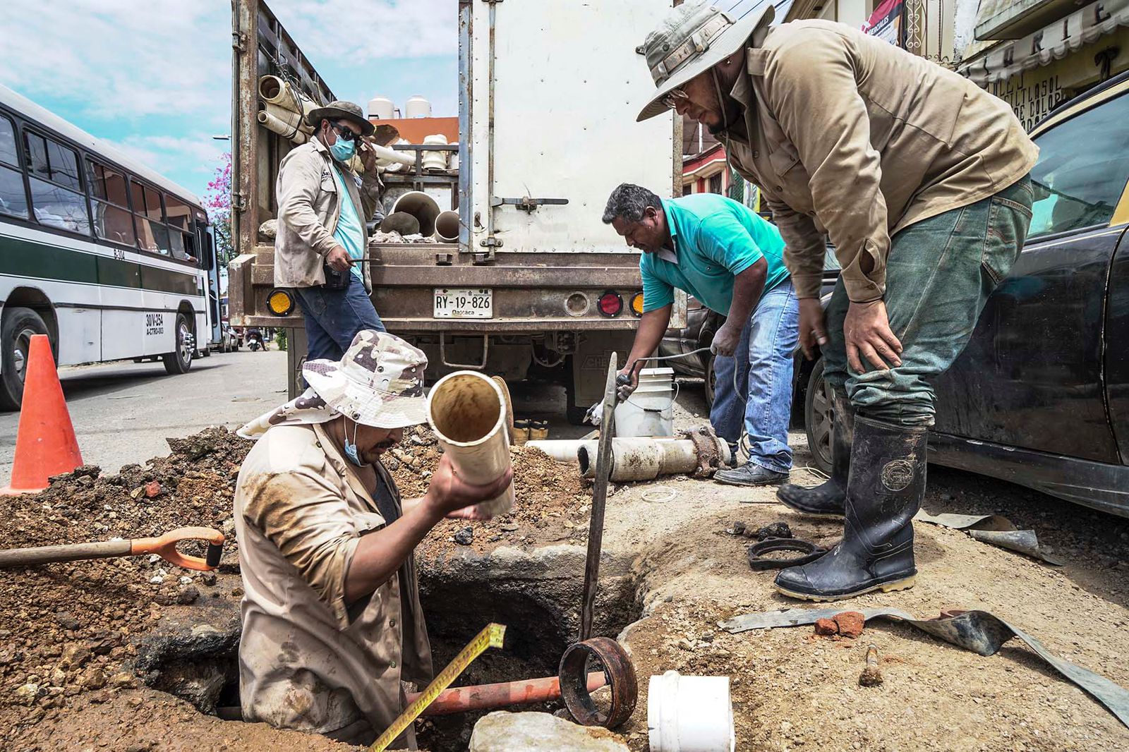 Realiza SAPAO tareas de reparación de tubería de agua potable en calle Díaz Ordaz, Centro