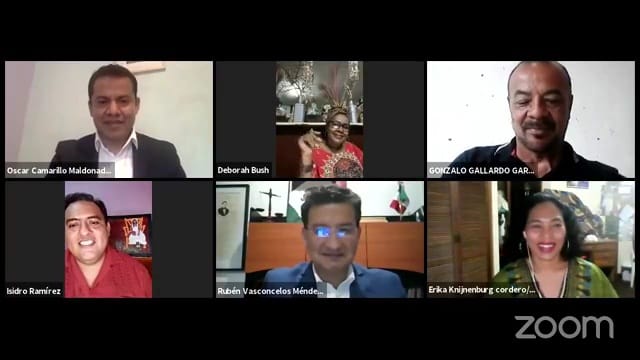 Así también, del presidente de Socpinda A.C, Oaxaca, Isidro Ramírez López; del representante del Movimiento Orgullo Afromexicano de Guerrero, Gonzalo Gallardo García; de la coordinadora del V Coloquio Internacional de Afrodescendientes, Bolivia, Erika Knijnenburg Cordero y de la presidenta de la Organización «Nelson Mandela» de Santa Marta, Colombia, Matilde Ester Maestre Rivera.