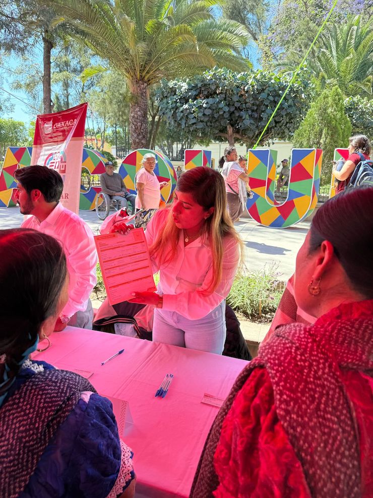 En la feria participaron también personal del Instituto Mexicano del Seguro Social (IMSS) Oaxaca, y de la Secretaría de Bienestar, Tequio e Inclusión (Sebienti) quienes brindaron atención sobre la incorporación al programa “Mi Primera Chamba”.