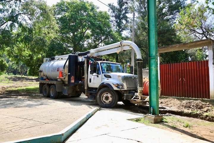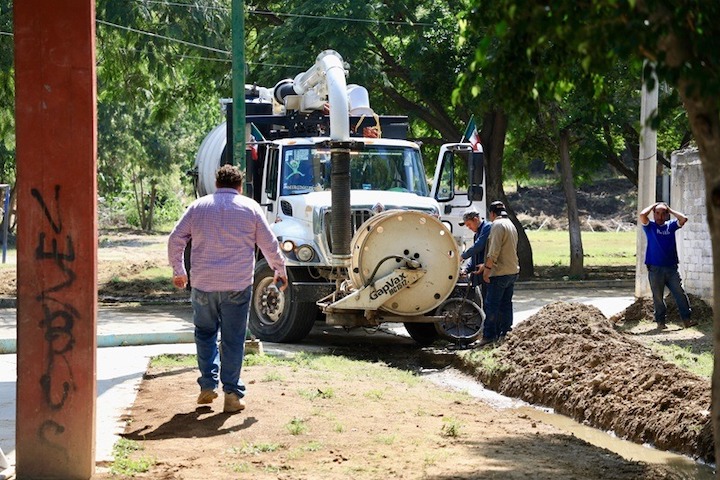 Con apoyo de equipo hidroneumático, el 5 de septiembre se dio mantenimiento a la línea de drenaje sanitario; posteriormente, el 9 de septiembre, de forma manual, se realizó el desazolve de los pozos de visita y dos cajas de registro (tipo arenero).