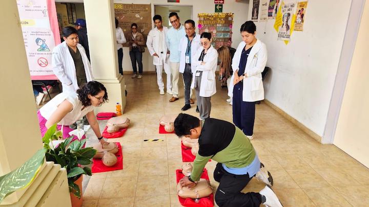 Como parte de las actividades, se impartió una capacitación a estudiantes del noveno semestre de Medicina de la Universidad Regional del Sureste (URSE), enfocada en la enfermedad de Chagas, sus complicaciones, la biología del vector Trypanosoma cruzi y maniobras de Reanimación Cardiopulmonar (RCP).