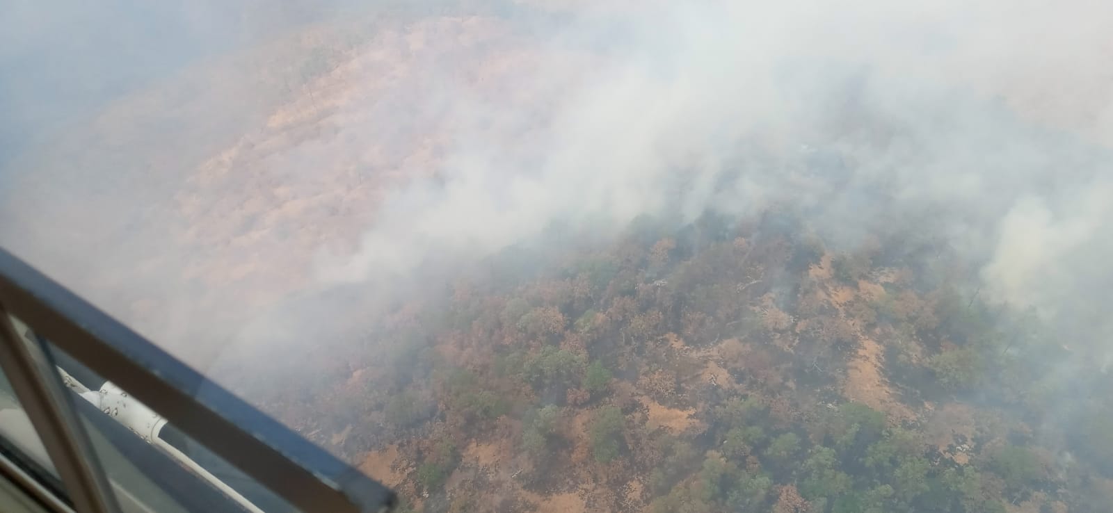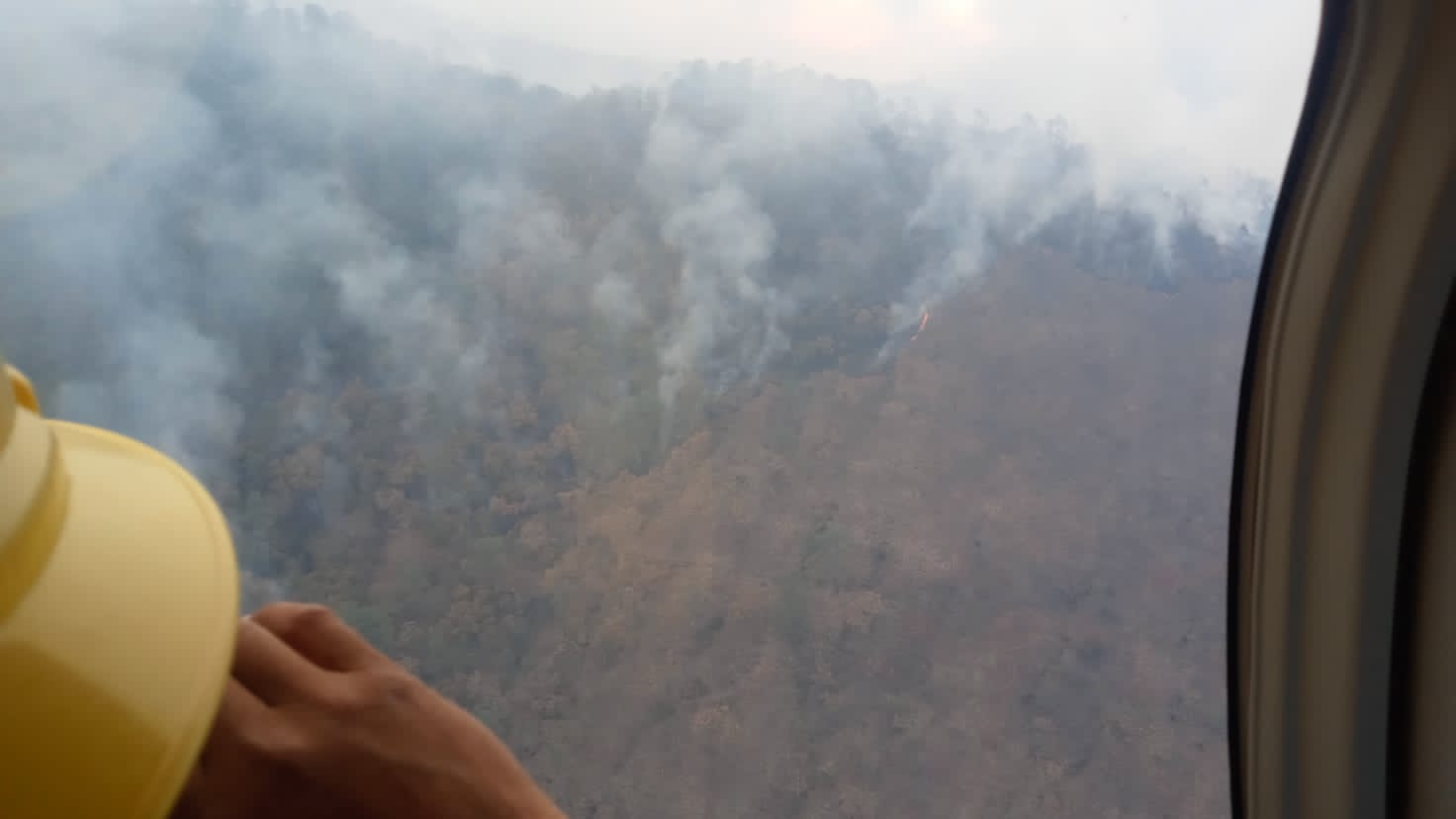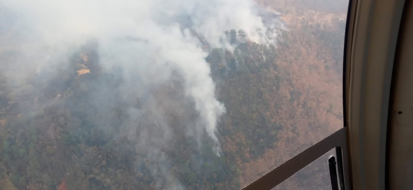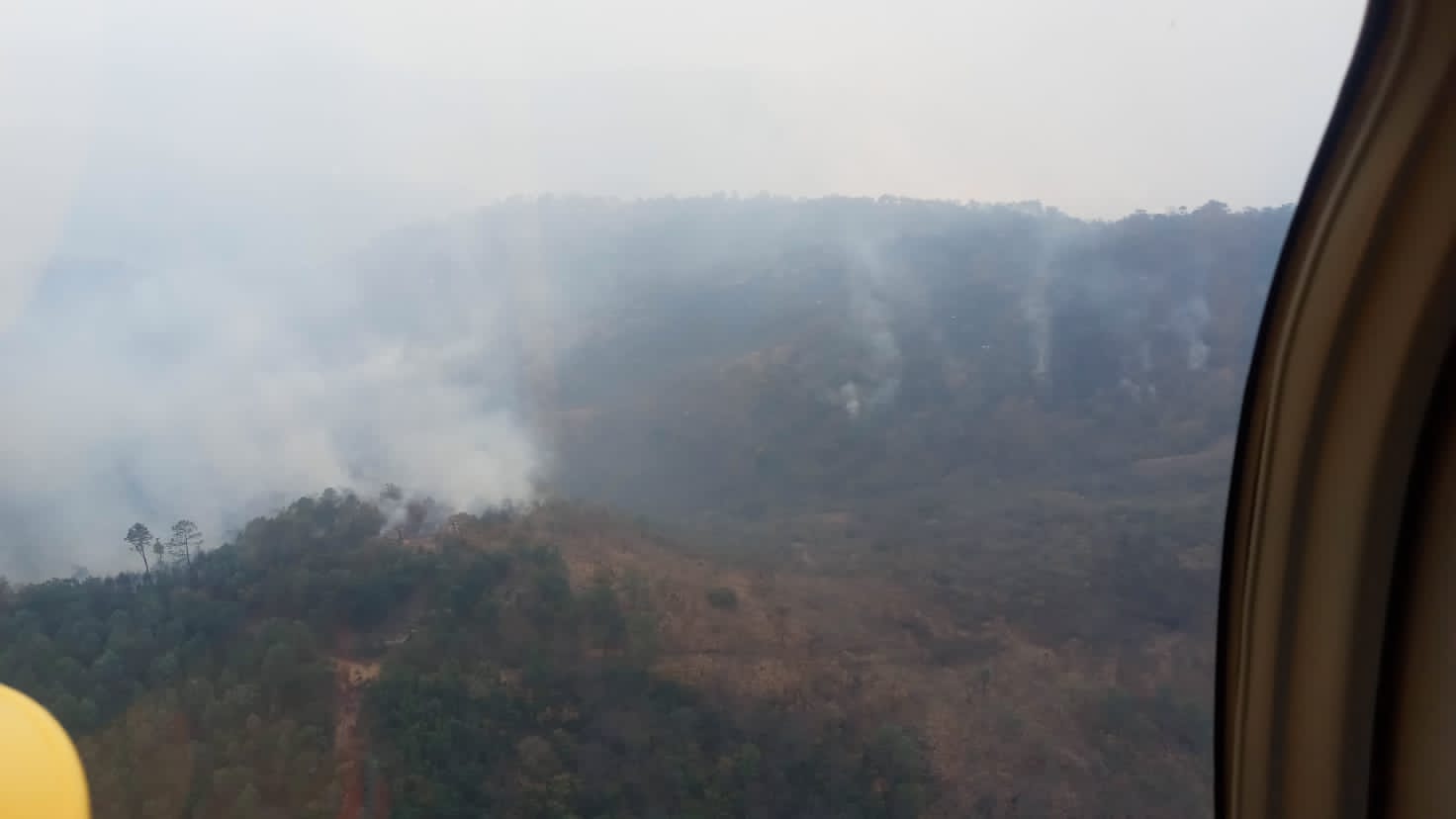 Realizan reconocimiento aéreo del incendio en paraje Cerro del Metate de San Juan Mixtepec