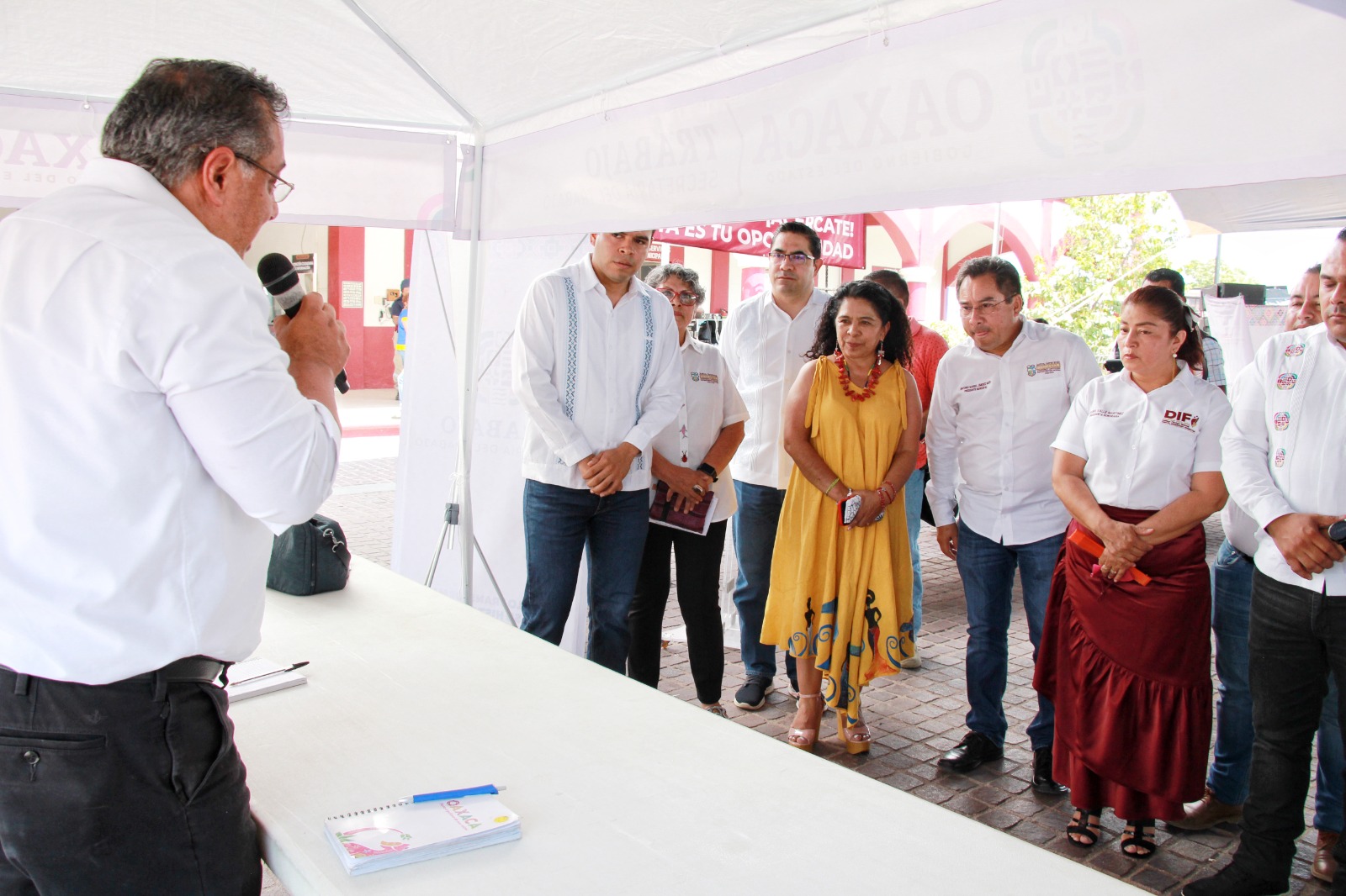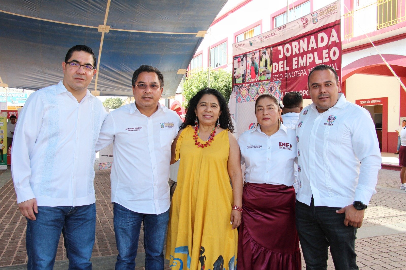 Al evento acudieron, la secretaria del Trabajo, Edith Santibáñez Bohórquez; el coordinador del Servicio Nacional de Empleo, Genaro Hernández Jiménez; el delegado del Infonavit en Oaxaca, Juan Jacob Pérez Miranda, y el presidente municipal de Santiago Pinotepa Nacional, Antonio Marbel Jiménez Meza.
