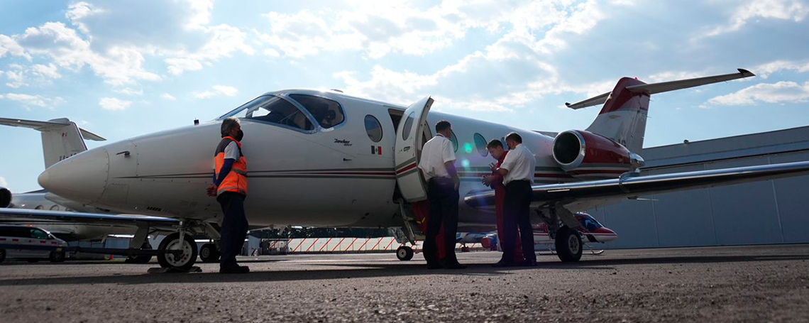El traslado aeromédico se realizó desde Juchitán de Zaragoza al aeropuerto de Toluca, a bordo del avión Beech Jet Hawker 400, que permitió reducir el tiempo del trayecto de urgencia del paciente para una atención médica de especialidad oportuna.