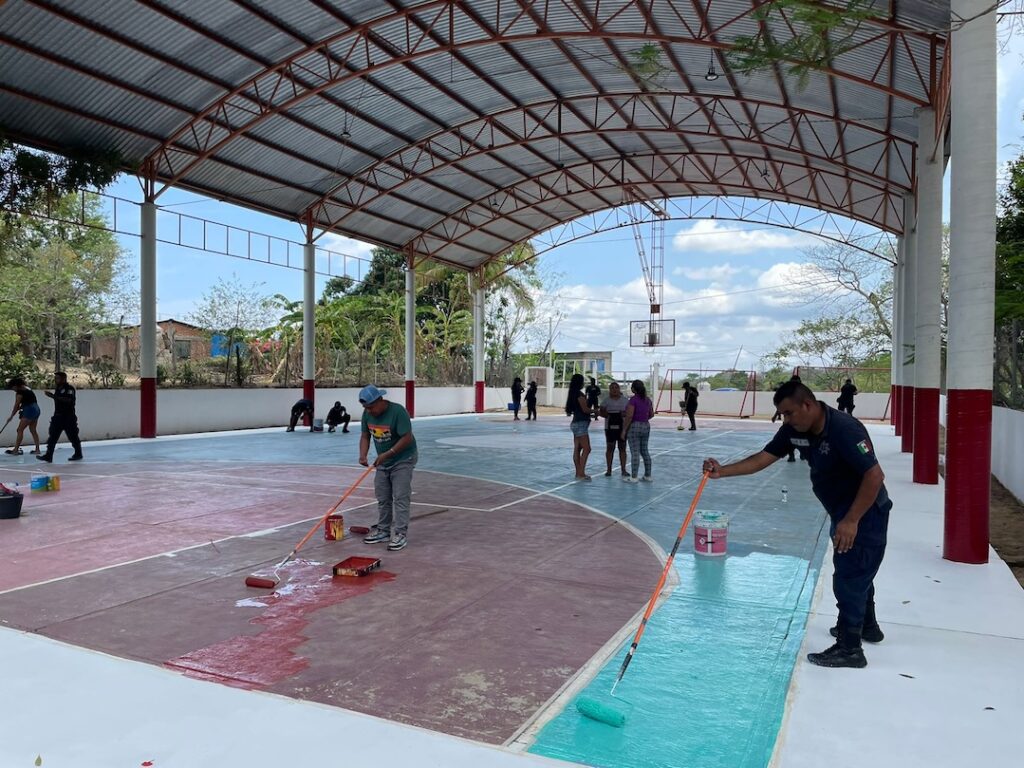 Oaxaca de Juárez, Oax. 16 de junio de 2024.- En la comunidad Barrio de Paso Ancho, perteneciente al municipio de Santa María Huatulco, la Secretaría del Trabajo (Setrao) realizó un tequio para rehabilitar la cancha de básquetbol y rescatar la cocina comunitaria en beneficio de más de 600 personas.