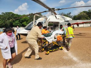 Realizan traslado aéreo de joven con hemorragia intracraneal