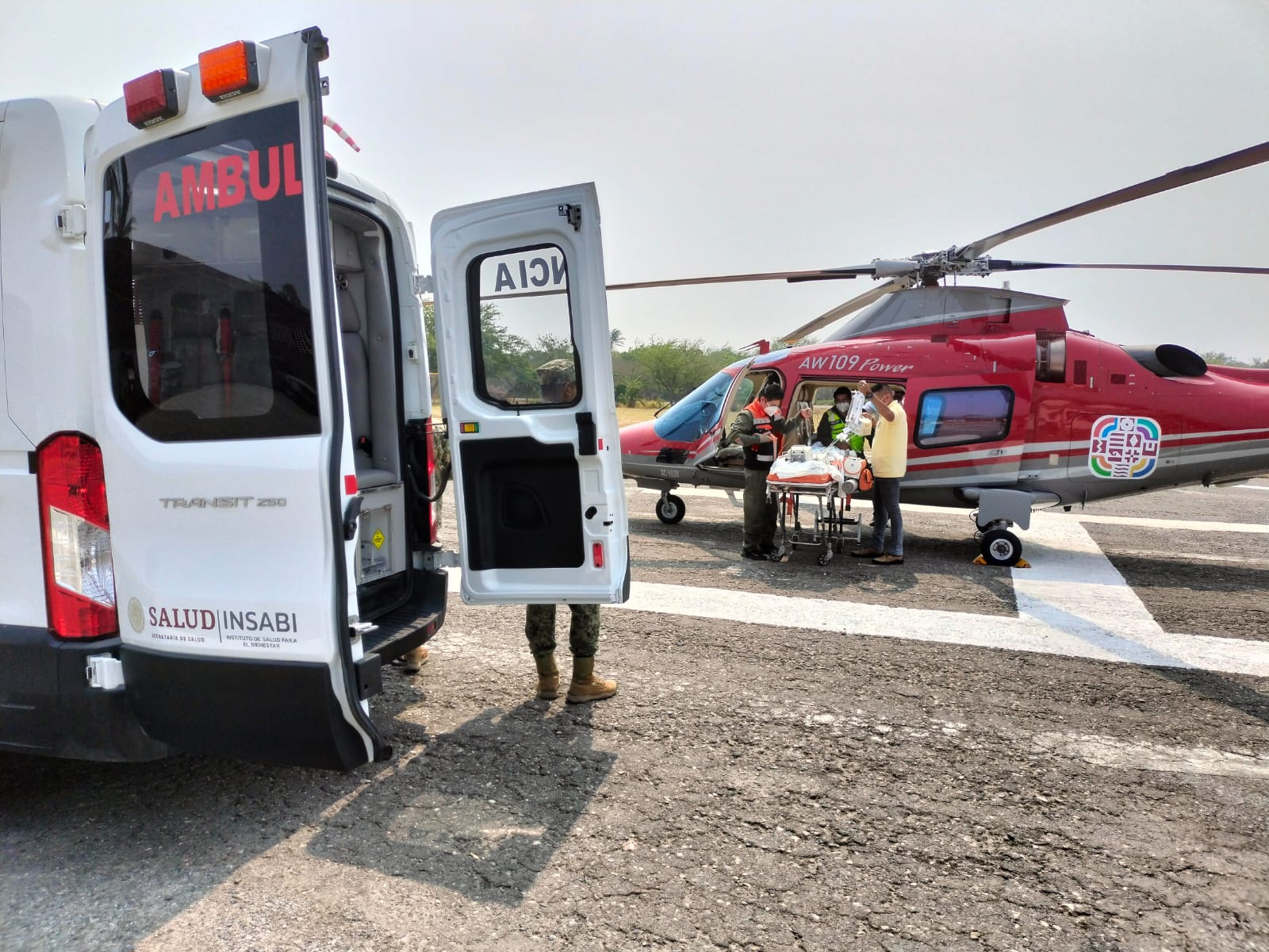 La aeronave, propiedad del Gobierno del Estado fue tripulada por los capitanes Álvaro Mora y Mario Pérez y como asistentes médicos los técnicos en urgencias médicas Alberto Arrazola y Alfredo Villagómez.