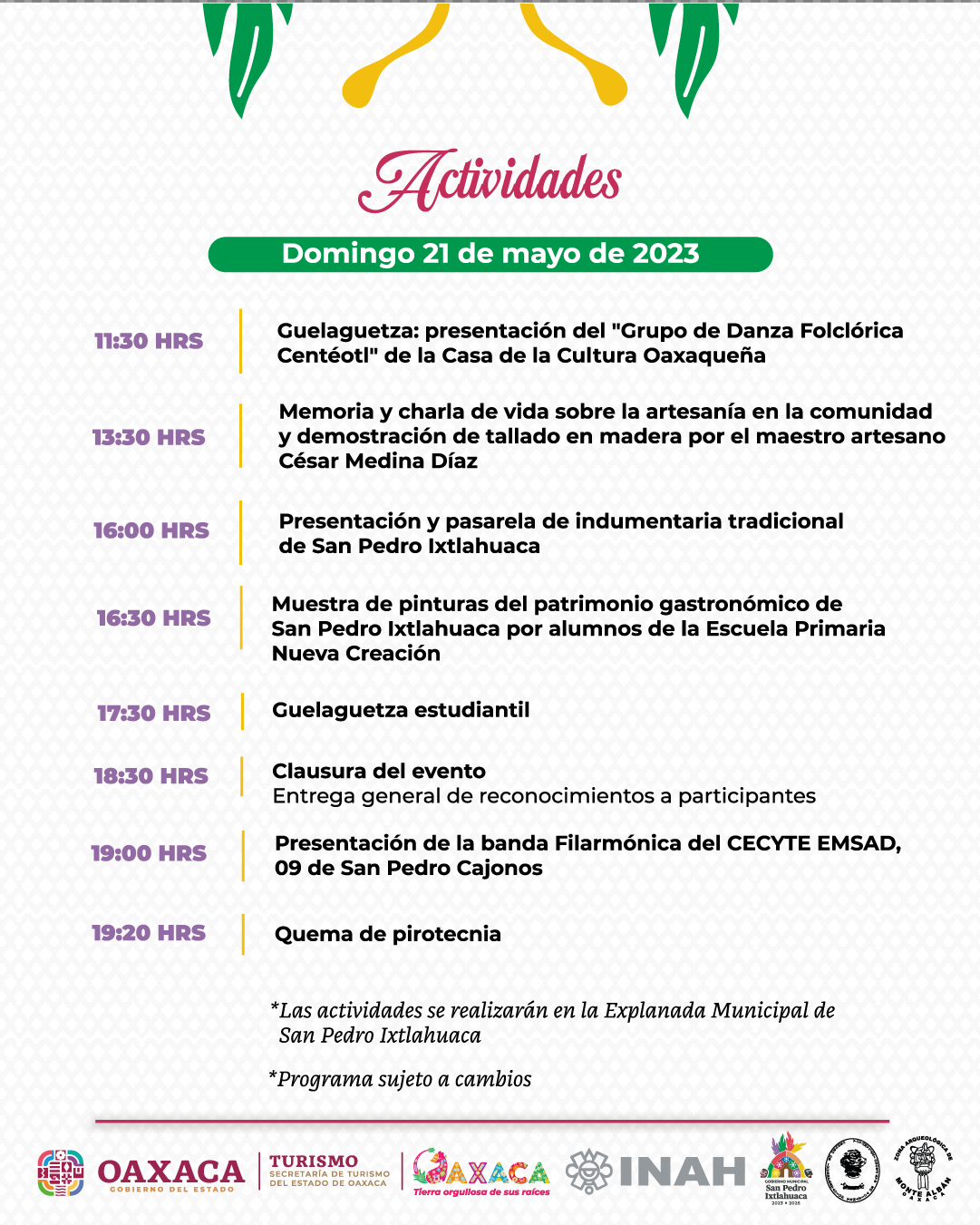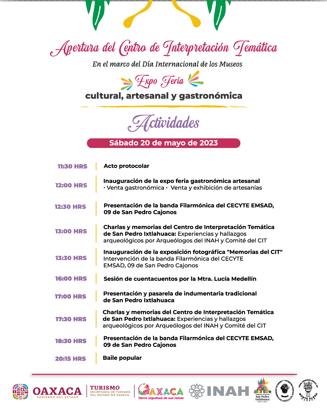 También habrá presentaciones de bandas filarmónicas, cuenta cuentos, charlas sobre la riqueza arqueológica de Ixtlahuaca, la Guelaguetza, el baile popular, entre otras actividades.