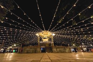 Estas tareas de embellecimiento se iniciaron en días pasados por personal del Departamento de Eventos Especiales de la dependencia, quienes instalaron en el zócalo 3 mil 600 bombillas led de 1w y 370 series de luz en tono dorado, así como el decorado del quiosco con figuras de nochebuenas, angelitos, esferas, estrellas y otros elementos multicolores.