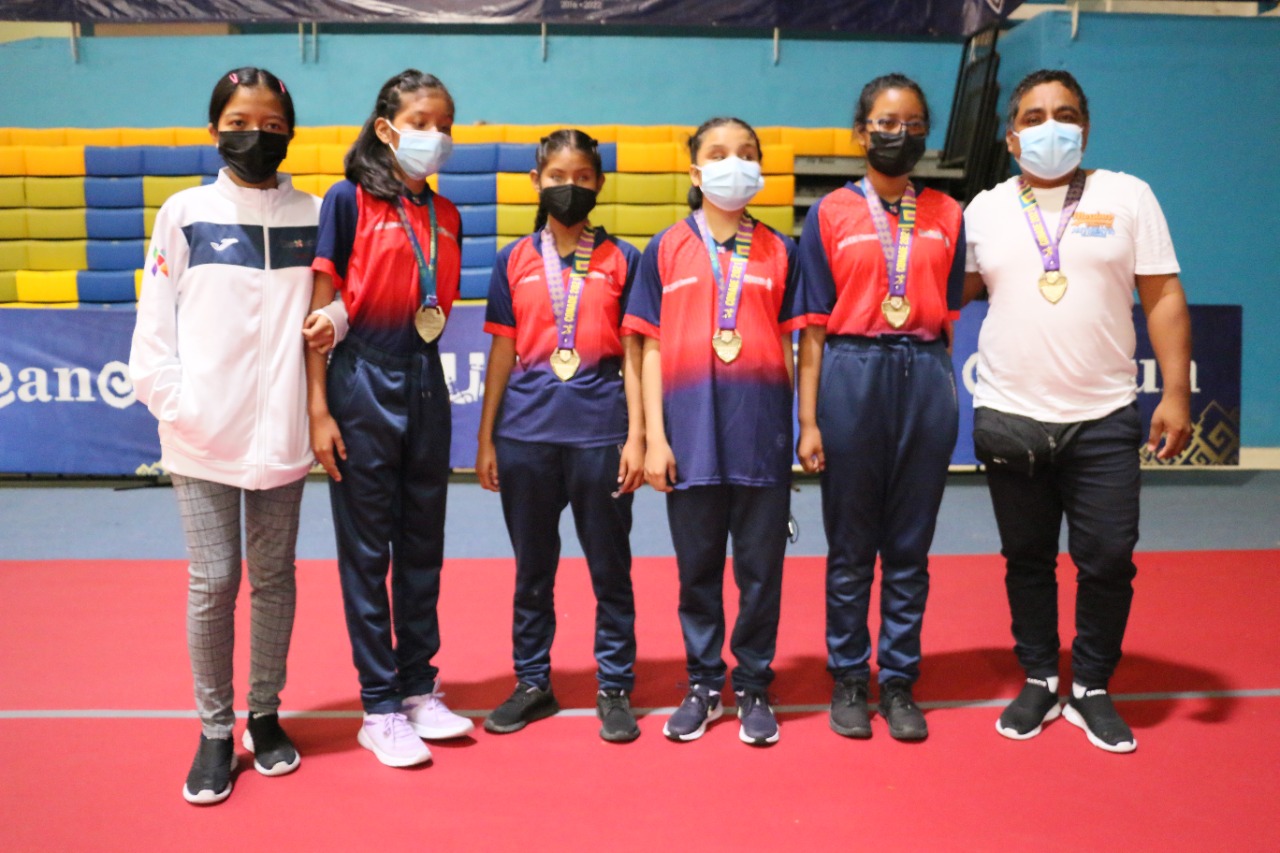 Abril Pedro Anaya, Belén Beteta Hernández, Yaretzi Santiago Morales y Esmeralda Santiago Marcos lucieron orgullosas sus medallas, mismas que las motivan para seguirse preparando y poder refrendar el metal dorado el próximo año para seguir haciendo historia.