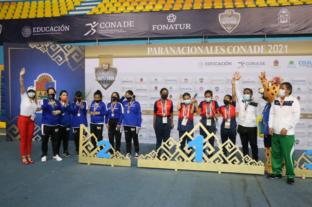 En el golbol, el equipo femenil oaxaqueño de la categoría 13-17 años, recibió su merecida medalla de oro que las acredita como campeonas nacionales, luego de derrotar en par de ocasiones a Nuevo León y una a Jalisco.