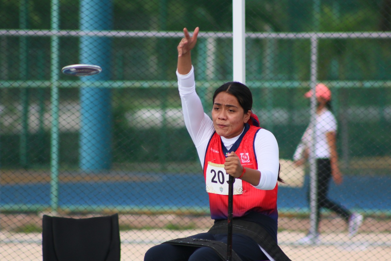 Cancún, Quintana Roo. 22 de octubre de 2021.- Con una distancia de 11 metros, 32 centímetros, la atleta oaxaqueña Rebeca Citlaly Cortez Montaño, le da a Oaxaca la primera medalla de oro en el paraatletismo de los Paranacionales Conade, al imponerse en la prueba de lanzamiento de disco, sobre las representantes de Morelos y Jalisco.