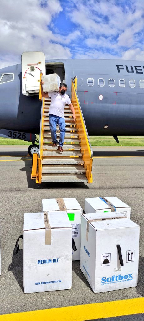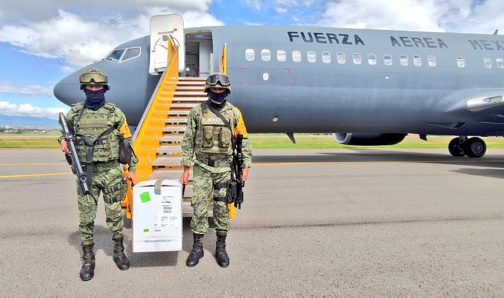Oaxaca de Juárez, Oax. 29 de septiembre de 2022.- Este jueves, a bordo de un avión de la Fuerza Aérea Mexicana, Oaxaca recibió el octavo cargamento con 168 mil 210 vacunas contra el SARS-CoV-2 de la farmacéutica Pfizer-BioNTech e insumos, que serán utilizados para proteger a menores de cinco a 17 años de edad con primeras y segundas dosis, las cuales serán distribuidas a las instituciones del Sector Salud la próxima semana, informaron los Servicios de Salud de Oaxaca (SSO).