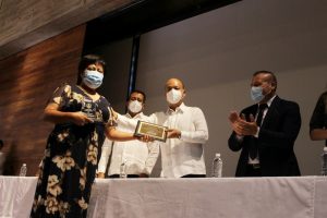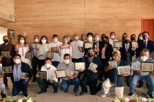 En el marco del Día del Caminero que se conmemora cada 17 de octubre, se entregaron de manera simbólica reconocimientos a las y los trabajadores que cumplieron 20, 25 y 29 años de servicio en la planeación, construcción y mejoramiento de la red estatal de caminos y carreteras.