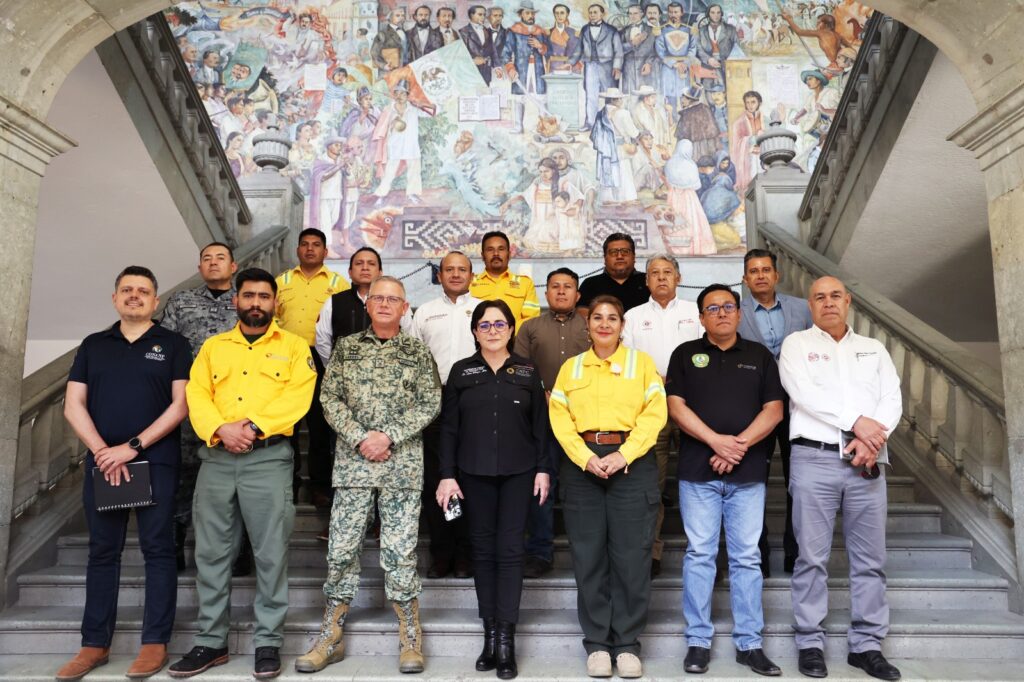 La funcionaria federal sostuvo, en Palacio de Gobierno, una reunión de evaluación con: Maza Sánchez; la directora de la Comisión Estatal Forestal (Coesfo), Magdalena Coello Castillo; representantes de la Comisión Nacional Forestal (Conafor), Comisión Nacional de Áreas Naturales Protegidas (Conanp), Secretaría de la Defensa Nacional (Defensa), Guardia Nacional y personal de la CEPCyGR.