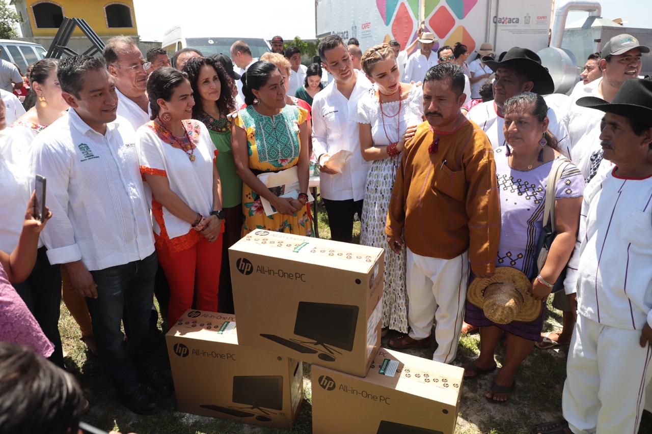 Por medio del Instituto Estatal de Educación Pública de Oaxaca (IEEPO), se otorgó equipo de cómputo y mobiliario en beneficio de más de cuatro mil estudiantes de 32 escuelas ubicadas en 10 municipios de la zona, que requirió 1.3 millones de pesos.