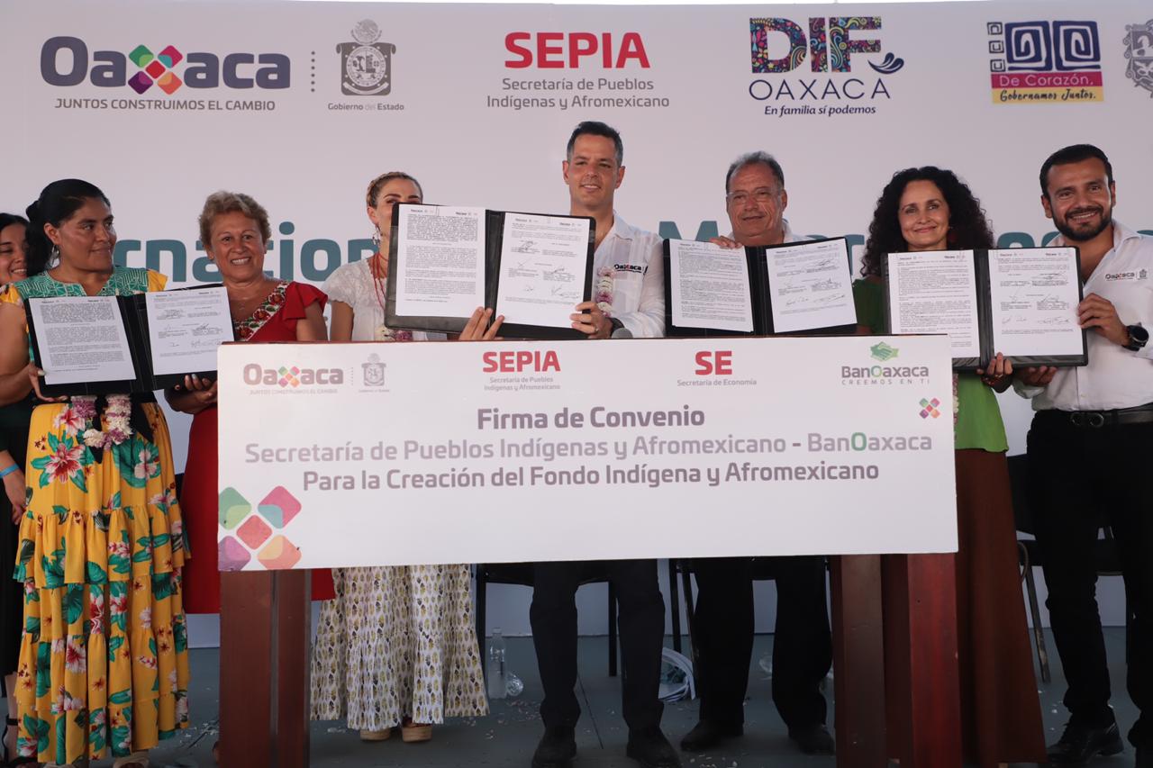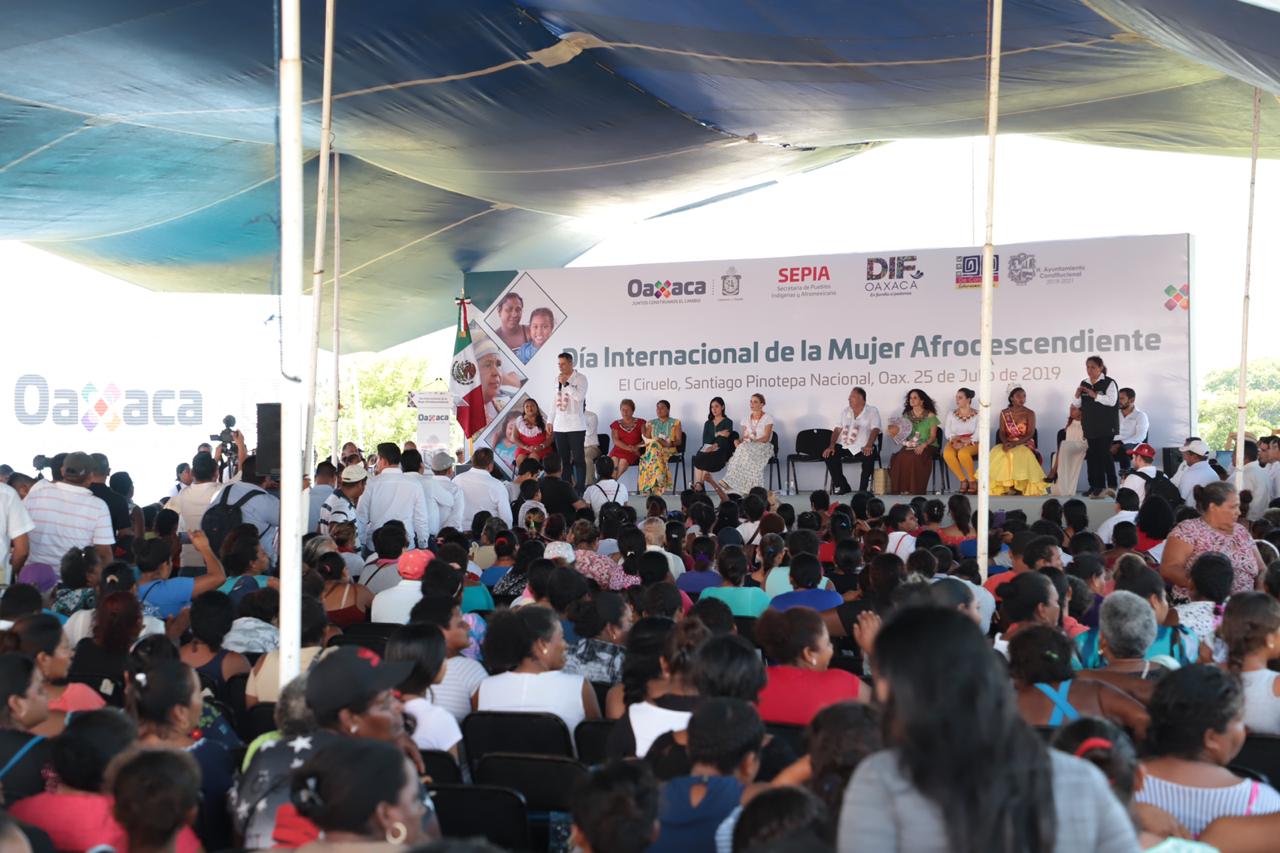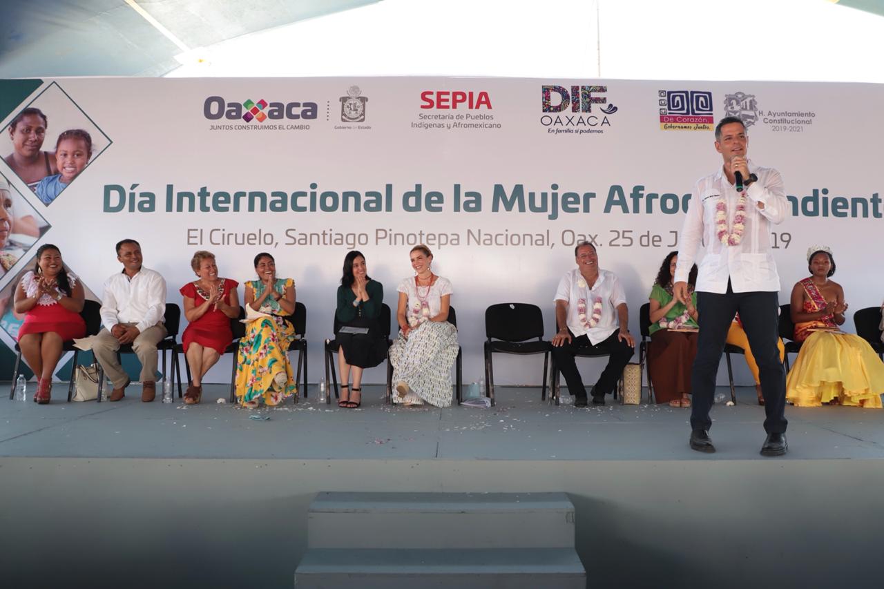 Santiago Pinotepa Nacional, Oax. 25 de julio de 2019. En el marco del Día Internacional de la Mujer Afrodescendiente, por primera vez en la historia de Oaxaca, el gobernador Alejandro Murat Hinojosa suscribió como testigo un convenio para la creación del Fondo Indígena y Afromexicano, que busca visibilizar a las mujeres de esta tercera raíz y sus aportes a la entidad.