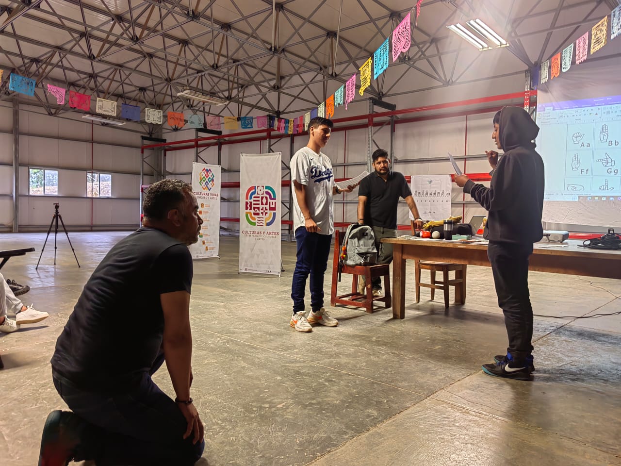 En Santa María Tlahuitoltepec, en el salón de usos múltiples del Centro de Capacitación Musical (Cecam) comenzó el Taller «Señas a escena», dirigido a 45 adolescentes quienes fortalecen su formación inclusiva a través del aprendizaje de la Lengua de Señas Mexicana.