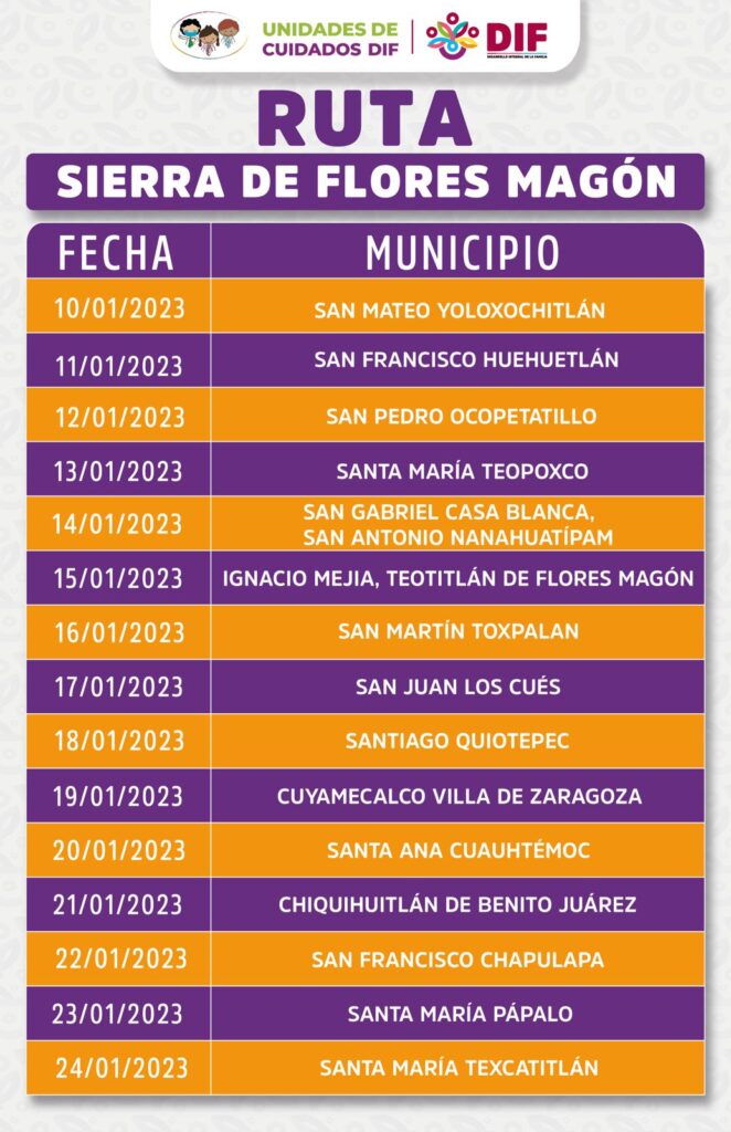 Mientras que, el 15 de enero se brindará atención en la agencia Ignacio Mejía de Teotitlán de Flores Magón, el 16 en San Martín Toxpalan, el 17 en San Juan de los Cués, el 18 en Santiago Quiotepec del municipio de San Juan Bautista Cuicatlán y el 19 de enero en Cuyamecalco Villa de Zaragoza.