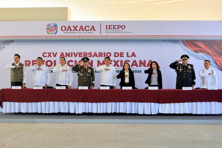 Oaxaca de Juárez, Oax. 20 de noviembre de 2025.- Al encabezar la ceremonia de conmemoración del 115 Aniversario del Inicio de la Revolución Mexicana, el Gobernador Salomón Jara Cruz destacó que la Primavera Oaxaqueña, heredera de los ideales de este movimiento de 1910, trabaja cada día por una transformación real, profunda y duradera que se demuestra con hechos.
