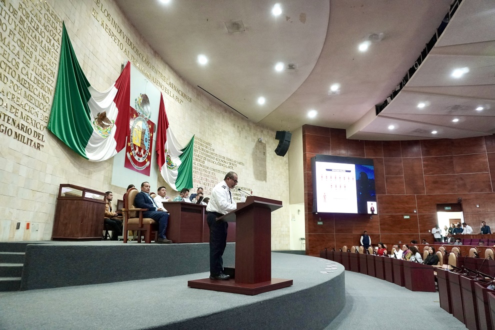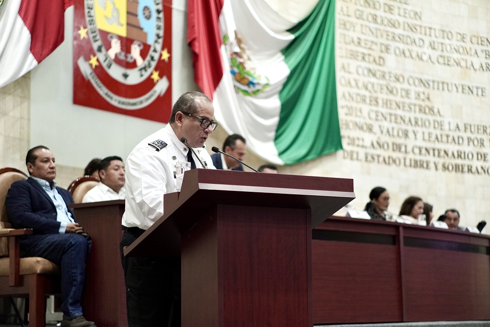 Oaxaca de Juárez, Oax. 30 de enero de 2024.- Dignificación policial y la incidencia delictiva a la baja, que colocan a Oaxaca como el quinto estado más seguro del país, son las principales acciones que el titular de la Secretaría de Seguridad y Protección Ciudadana (SSPC) Iván García Álvarez destacó al comparecer como parte de la Glosa del Primer Informe del Gobernador Salomón Jara Cruz.