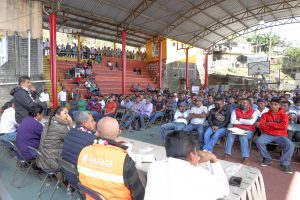 En el mes de febrero inició recorridos en los 31 municipios afectados por el huracán Agatha, y a la fecha ya ha encabezado asambleas en 17 poblaciones para evaluar la correcta aplicación de los recursos del programa emergente.