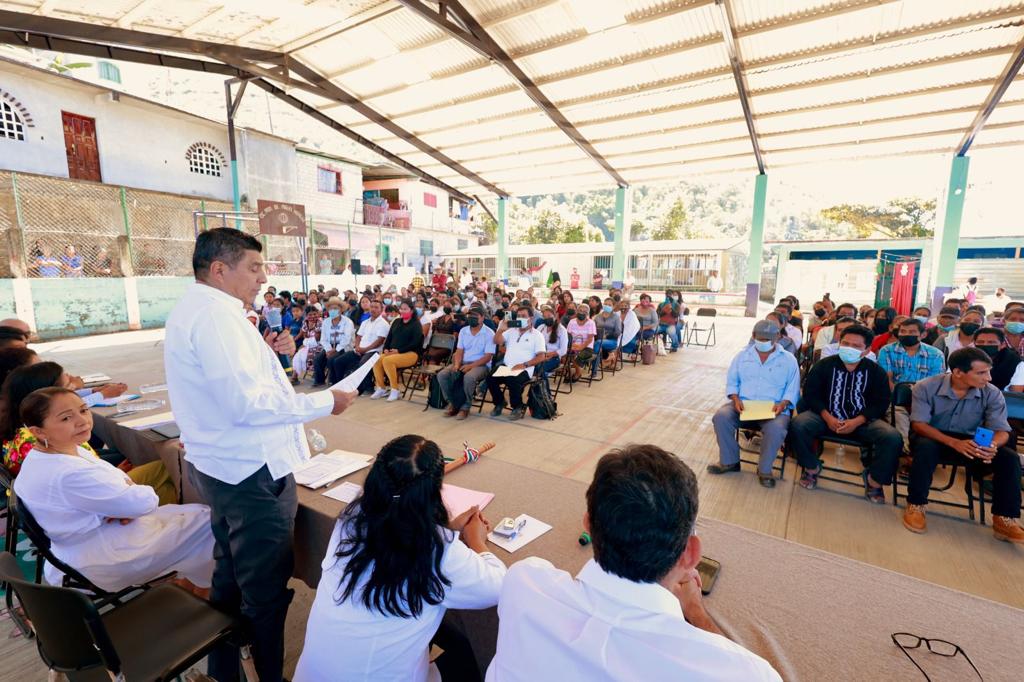 En el mes de febrero inició recorridos en los 31 municipios afectados por el huracán Agatha, y a la fecha ya ha encabezado asambleas en 17 poblaciones para evaluar la correcta aplicación de los recursos del programa emergente.