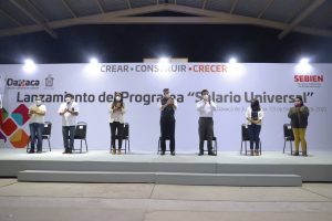 Asimismo, el Gobernador mencionó que el Programa Salario Universal para Personas en Situación de Vulnerabilidad, tiene un presupuesto global de 100 millones de pesos que beneficiaran a más de 40 mil familias oaxaqueñas con un subsidio mensual de 500 pesos, recurso que será entregado por la Secretaría de Bienestar de Oaxaca (Sebien) a partir del mes de noviembre de 2021 a junio de 2022.