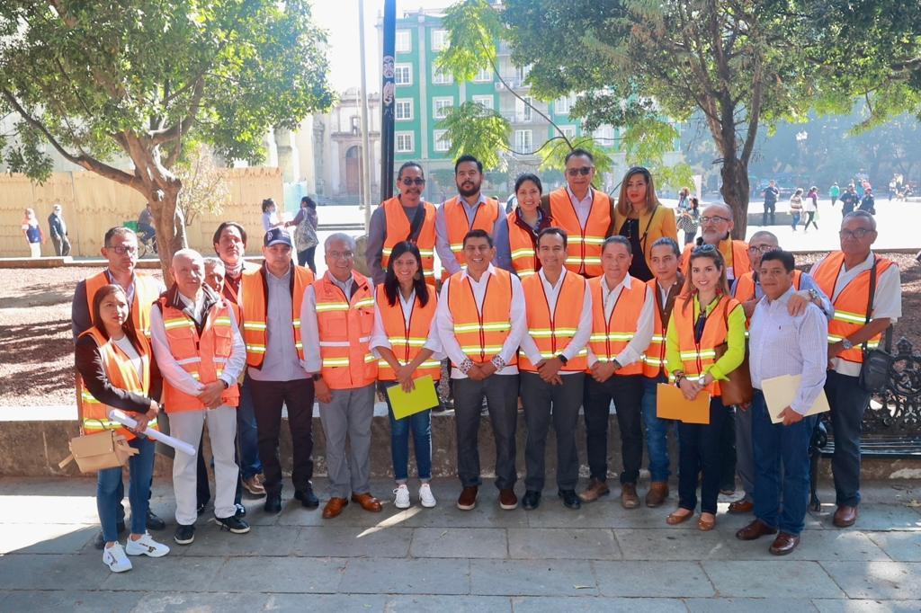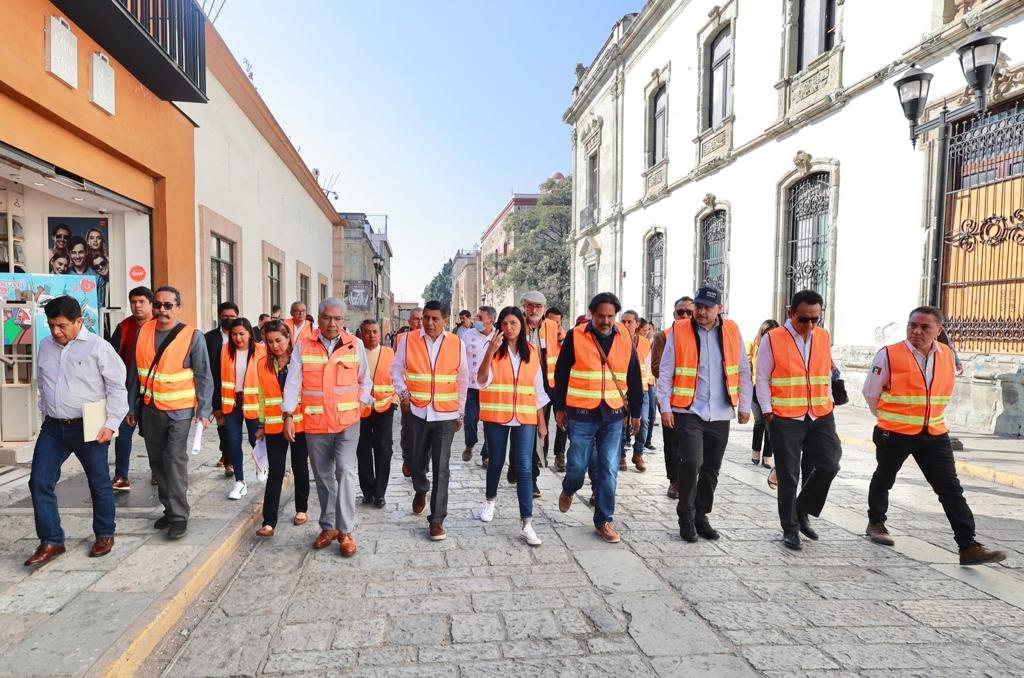 Como parte de este trayecto, el mandatario estatal se reunió con la secretaria de Movilidad, Claudina de Gyves Mendoza, y el secretario de Infraestructuras, Comunicaciones y Ordenamiento Territorial, Nezahualcóyotl Salvatierra López, para constatar el estado en que se encuentran las calles del primer cuadro de la ciudad.