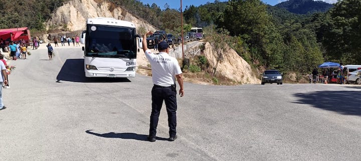 El director general de la corporación, Toribio López Sánchez informó que por instrucción del Gobernador Salomón Jara Cruz, se incrementó la presencia de personal y se instaló un módulo de información, atención y auxilio a la altura de San Lucas Cerro del Vidrio, para prevenir accidentes, brindar acompañamiento vial y disuadir cualquier conducta delictiva.