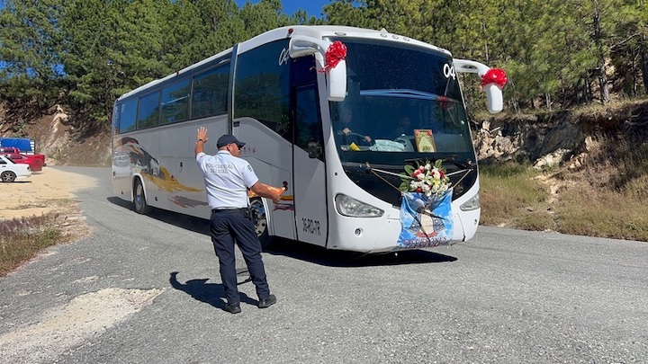 Refuerza Policía Vial Estatal seguridad de personas peregrinas rumbo al Santuario de la Virgen de Juquila