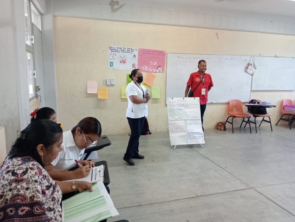 Juchitán de Zaragoza, Oax. 6 de noviembre de 2024.- Ante la presencia de casos sospechosos de varicela en una institución educativa en este municipio, Servicios de Salud de Oaxaca (SSO) en coordinación con el personal del centro de salud de IMSS Bienestar de la colonia Luis Donaldo Colosio, acudieron a realizar actividades de promoción y prevención para alumnado y docentes.