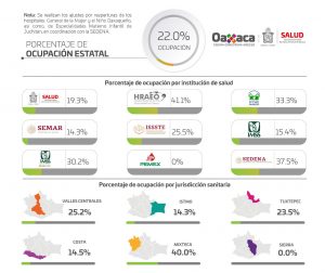 Las jurisdicciones sanitarias de la Mixteca se encuentran con un 40%, Valles Centrales con 25.2%, Tuxtepec con 23.5%, Costa 14.5%, Istmo 14.3% y Sierra 0%.