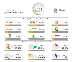 Dijo que la ocupación hospitalaria el día de hoy es del 25.6%, con 19 nuevos hospitalizados, 5 hospitales se encuentran al 100% de su ocupación.