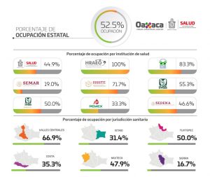 Finalmente, dijo que existen seis centros de valoración de primer contacto en la zona conurbada, entre ellos: el hospital general de zona número 1 del Instituto Mexicano del Seguro Social (IMSS), el hospital Presidente Juárez del Instituto de Seguridad y Servicios Sociales de los Trabajadores del Estado (ISSSTE), el Hospital General “Dr. Aurelio Valdivieso”, el Centro de Salud urbano uno, el hospital móvil, y el Hospital Regional de Alta Especialidad de Oaxaca.