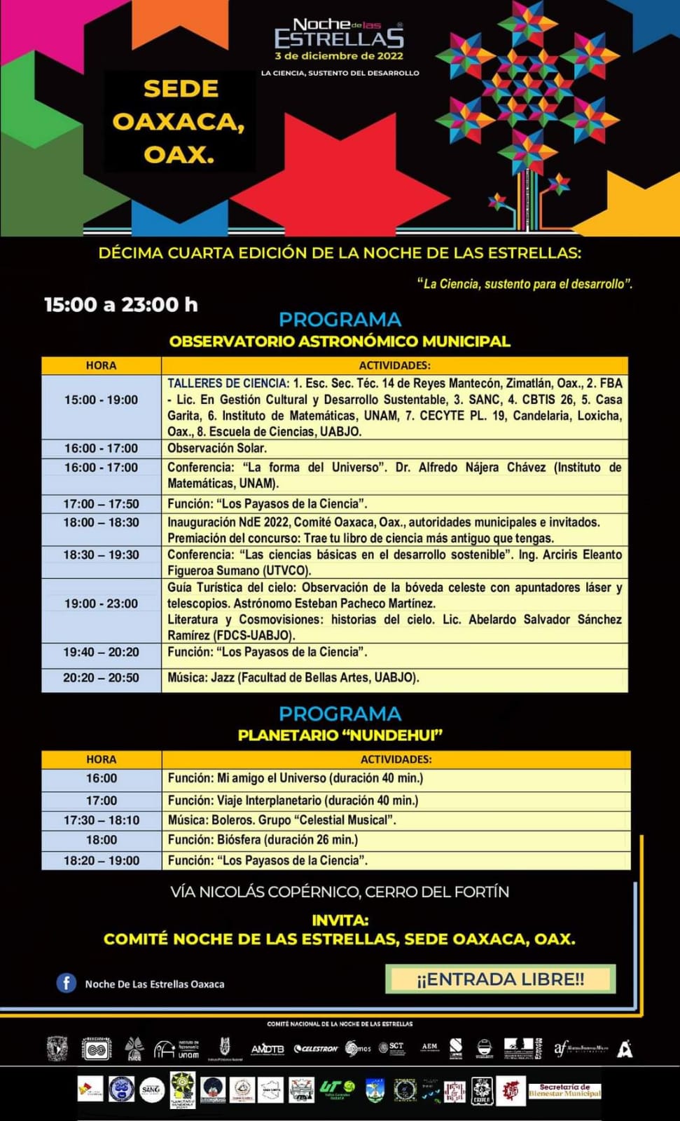 Este encuentro gratuito busca que mujeres y hombres de todas las edades se involucren con la ciencia y la astronomía mediante diferentes talleres, conferencias, funciones planetarias, entre otros. El Planetario Nundehui se ubica en la Vía Nicolás Copérnico, en el Cerro del Fortín.