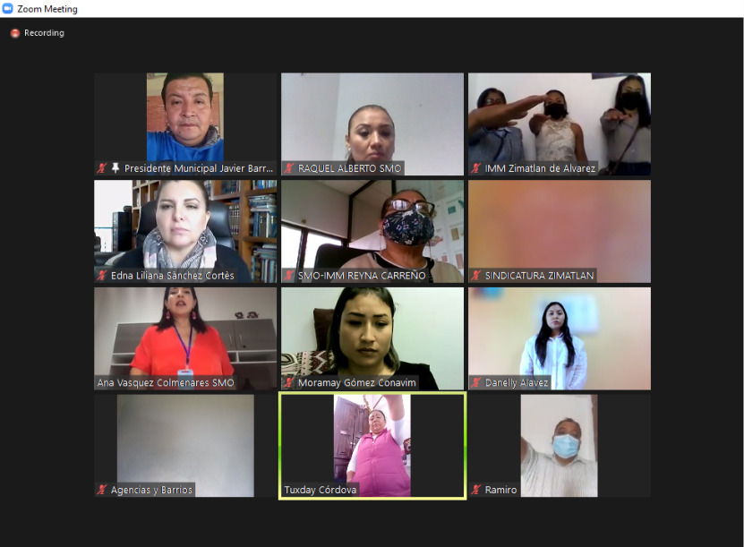 Oaxaca de Juárez, Oax. 24 de agosto de 2021. La titular de la Secretaría de las Mujeres de Oaxaca (SMO), Ana Vásquez Colmenares Guzmán, tomó protesta de manera virtual a quienes integran el Consejo Municipal para la Prevención, Atención, Sanción y Erradicación de la Violencia de Género contra las Mujeres durante la Sesión de Instalación del organismo, presidida por el munícipe de Zimatlán de Álvarez Javier Barroso Sánchez.