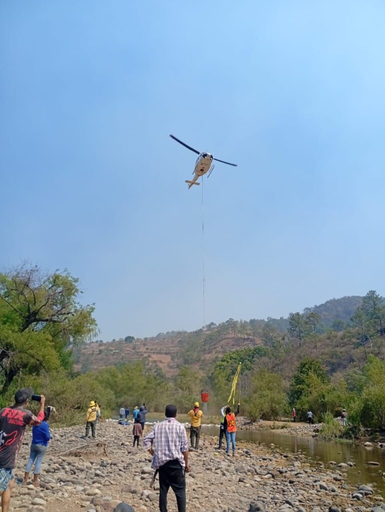 * A las labores de combate se sumó la aeronave de la administración estatal BELL UH-1H
