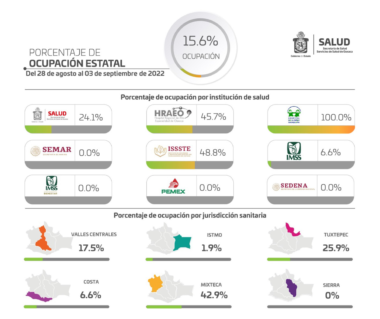 Derivado de lo anterior, destacó que el reporte sobre el comportamiento del virus SARS CoV-2 en el estado a partir del 11 de septiembre se mantendrá con una periodicidad semanal emitido los días domingo por medio de las cuentas oficiales de Facebook y Twitter de los SSO, así como en los medios de comunicación.