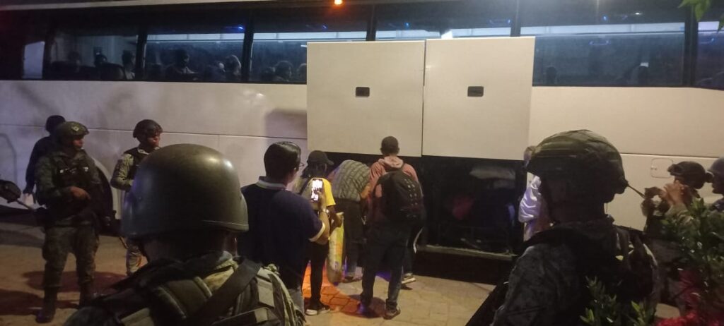 Personal del Instituto Nacional de Migración (INM) arribó al lugar para efectuar el traslado de las y los 67 migrantes rescatados.