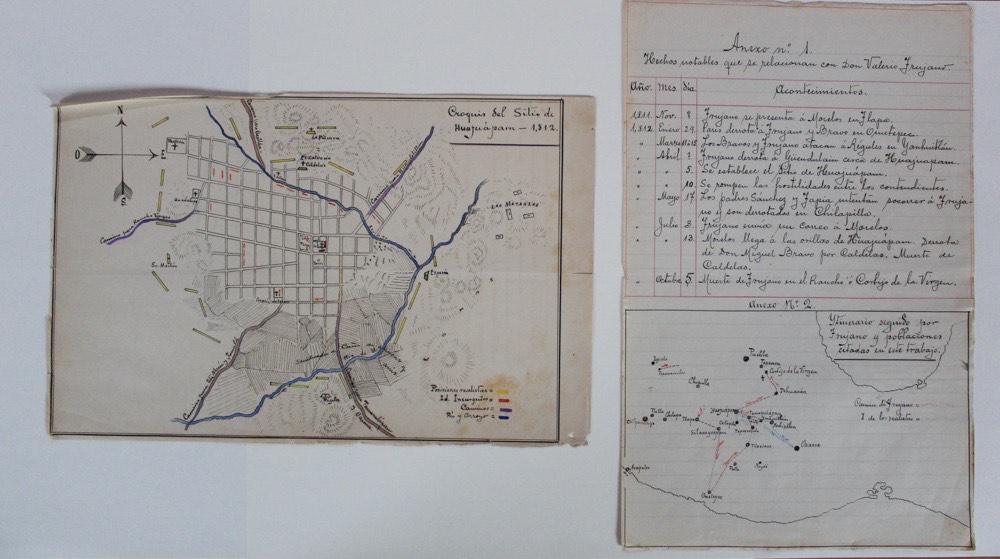 Se trata de mapas trazados a mano con páginas que incluyen datos relevantes sobre una de las batallas más largas de la Independencia. Es un trabajo académico anónimo que revela el avance de los Insurgentes y Realistas, así como las acciones que realizaron durante este conflicto, del cual se tienen escasos detalles.