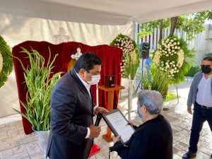 De esta manera, García López hizo entrega de un reconocimiento póstumo a Guadalupe de Pablo, madre de Rodolfo Quintero de Pablo, por el elevado compromiso, pasión y entrega en el servicio público con que se desempeñó su hijo; quien demostró su calidad como ser humano, misma que dejó honda huella de profesionalismo, compañerismo y lealtad institucional al deber cumplido.
