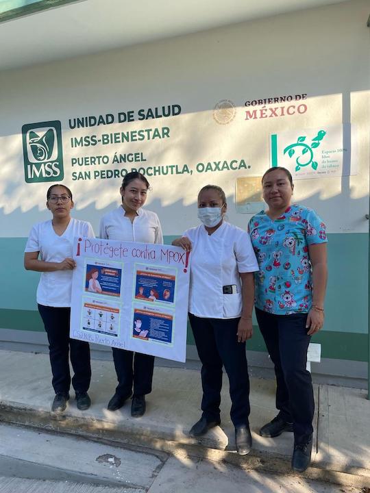 San Pedro Pochutla, Oax., 27 de febrero de 2025.- En un esfuerzo por fortalecer las medidas preventivas contra Mpox (viruela símica), la Jurisdicción Sanitaria 4 Costa de Servicios de Salud de Oaxaca (SSO), en coordinación con el Centro de Salud de Puerto Ángel IMSS-Bienestar, intensificó sus actividades informativas y de capacitación en esta demarcación.