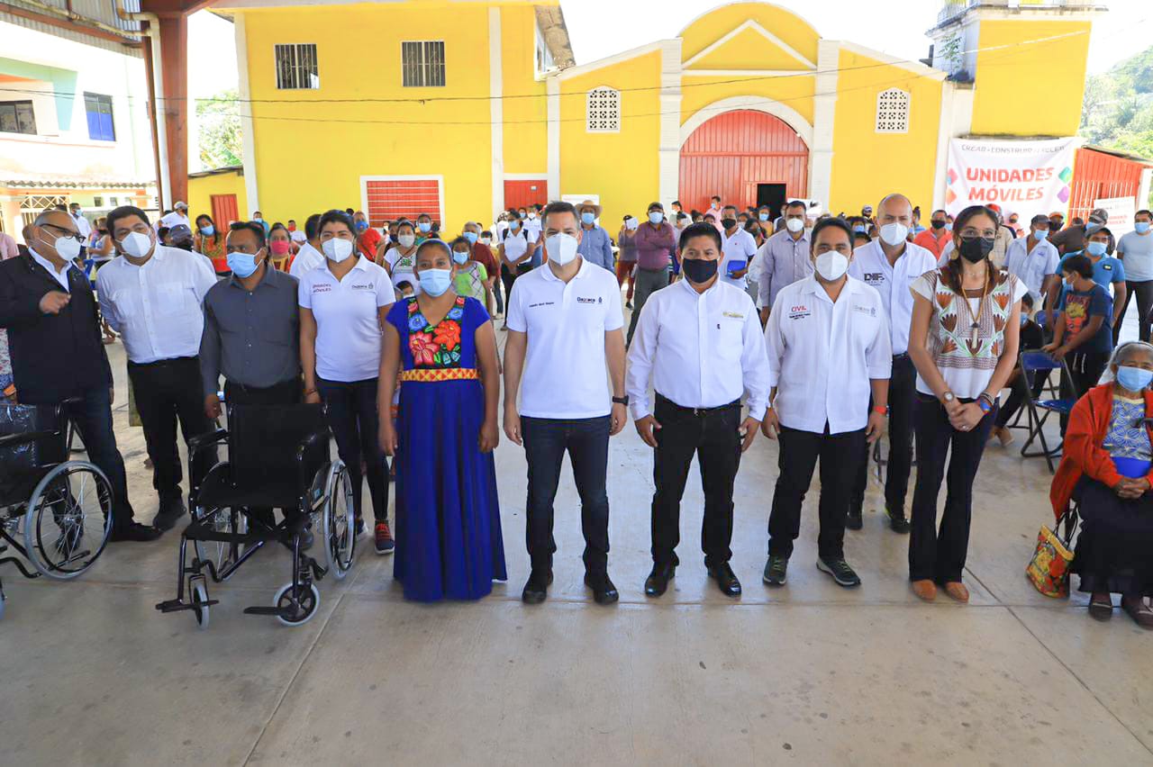 Cuidando las medidas sanitarias establecidas ante la pandemia por COVID-19, el Jefe del Poder Ejecutivo señaló que los apoyos funcionales como sillas de ruedas, bastones y otros, serán entregados por personal del DIF Oaxaca casa por casa a los beneficiarios de estos municipios.