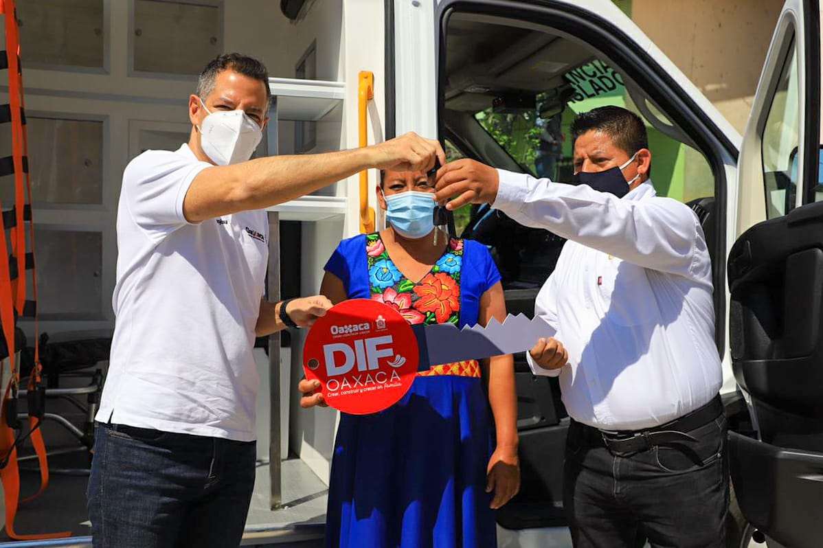 - En gira de trabajo, el gobernador Alejandro Murat entregó una ambulancia de traslados a estos municipios, así como apoyos a través del DIF Estatal, y puso en operación módulos de servicios digitales