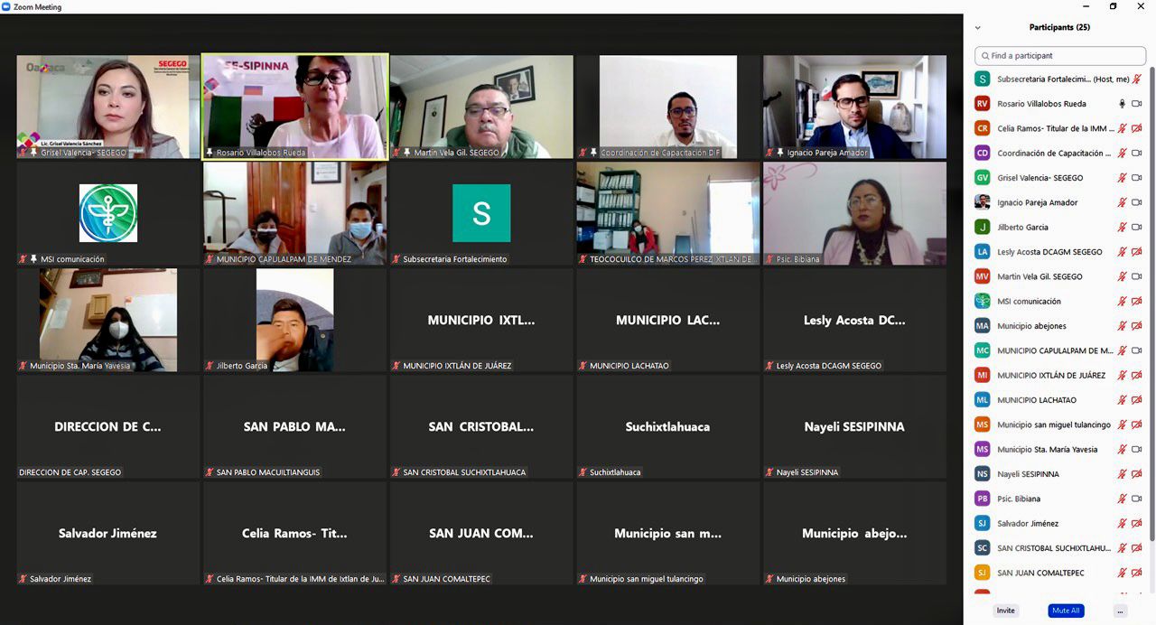 A través de la plataforma digital zoom, la capacitación inició con la participación de la coordinadora interna de capacitación del sistema DIF Oaxaca, Bibiana Lisbeth López López.