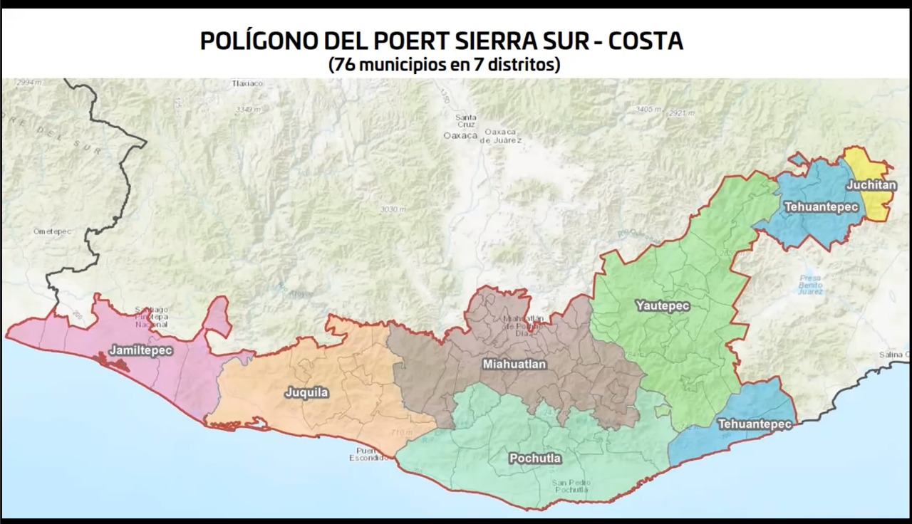 El Polígono del POERT RSS-C integra a 76 municipios de las regiones de la Sierra Sur, Costa e Istmo, que con la instalación del Órgano Técnico se garantiza la participación plural y representativa de diferentes sectores como: el turístico, infraestructura, comunicaciones, indígena y productivos.