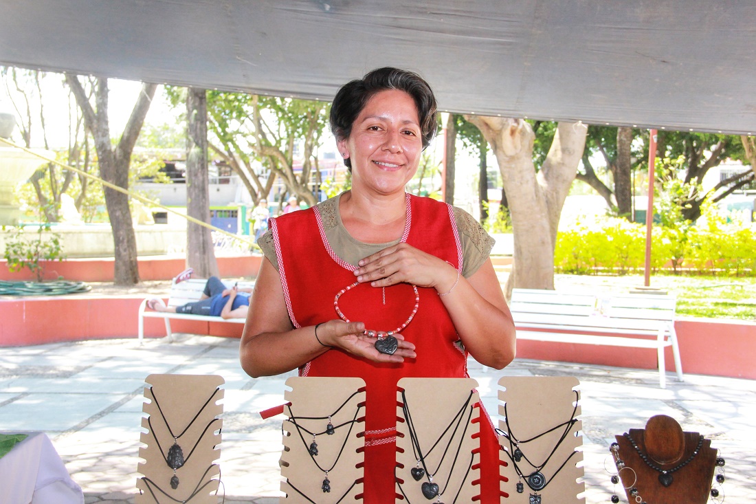 La artesana Verónica Pedro, quien trabaja piezas brillantes, pequeñas, joyería y de ornato, señala que esta feria se realiza cada año para reactivar la economía y las ventas de las familias luego de dos años de pandemia que hicieron estragos en la economía de San Bartolo, donde más de 700 familias se dedican al barro negro.