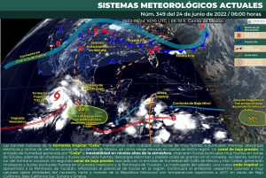 Oaxaca de Juárez, Oax. 24 de junio de 2022. La Coordinación Estatal de Protección Civil de Oaxaca (CEPCO) dio a conocer que para este viernes se mantendrá la afluencia de humedad del Océano Pacifico y Golfo de México, lo que favorecerá la presencia de lluvias ligeras a moderadas aisladas en el estado, sin descartar tormentas de rápido desplazamiento en horas de la tarde, debido al calentamiento diurno y el forzamiento orográfico, además de bancos de niebla en zonas serranas.